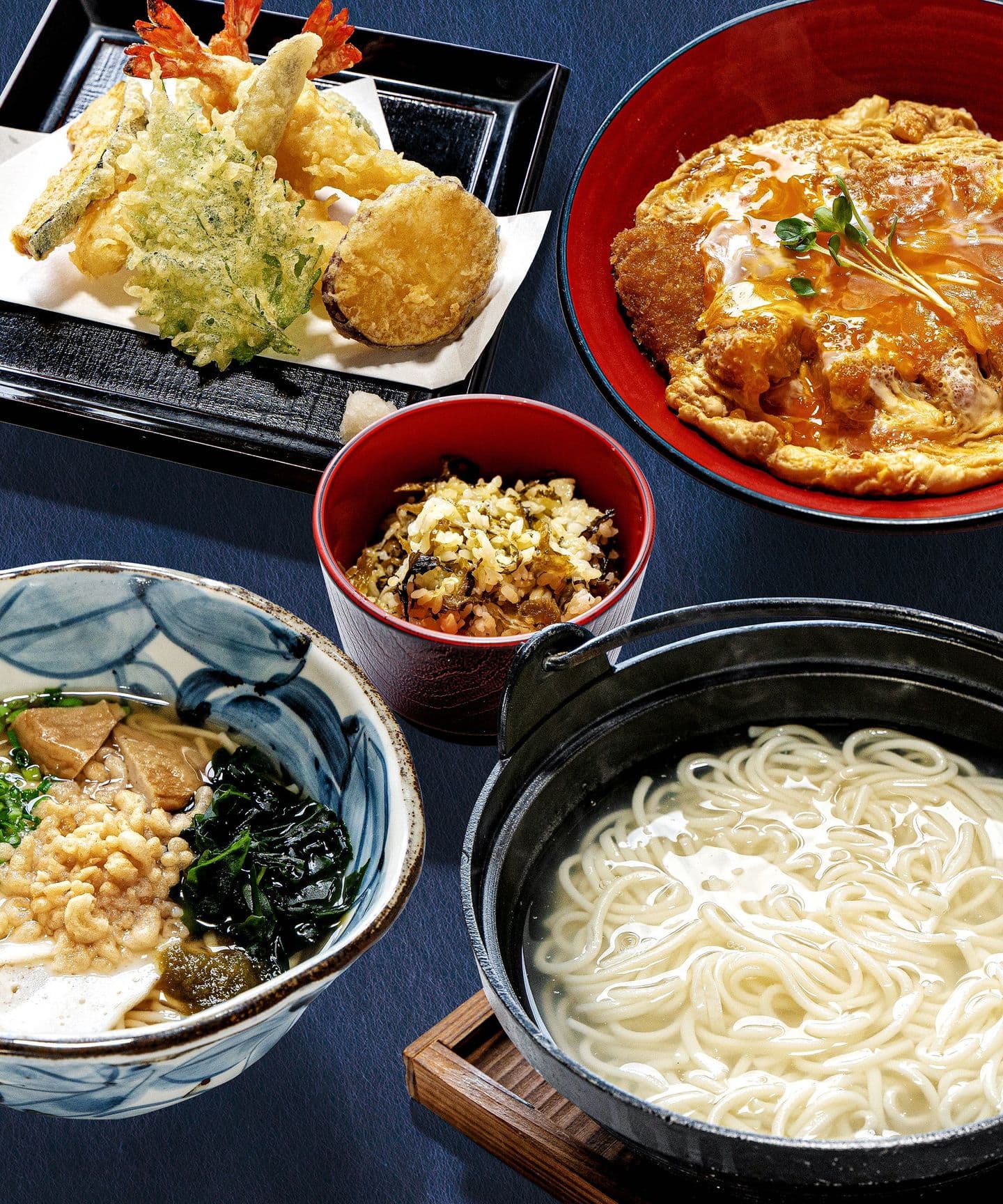 一つは、生卵を出汁醤油で溶いて、もう一つは、自家製の焼あご出汁を使った柚子風味のつゆに薬味を入れて、二つの味をお楽しみください。